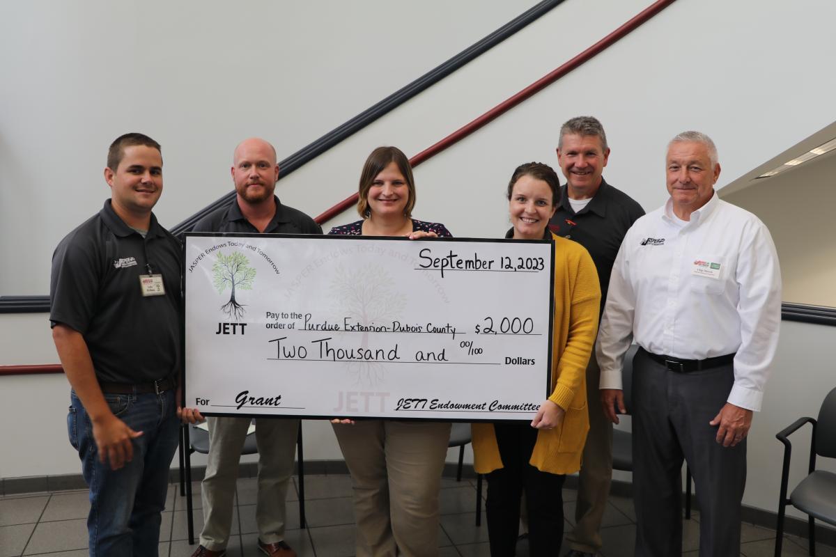 Jasper Endows Today and Tomorrow (JETT) presented a $2,000 grant on September 12th to Purdue Extension – Dubois County. The grant helps cover the purchase of 72 two-way radio kits, chargers, and headsets for the Southern Indiana 4-H Camp. Purdue Extension – Dubois County is part of a twelve-county 4-H camp for youth in grades 3-8, with youth in grades 9-12 acting as camp counselors. As part of the 4-H camp, adult chaperones, and camp counselors utilize two-way radios to communicate the whereabouts of campers, the need for nurses, and other issues. The current radios are at least ten years old and have become unreliable when speaking in them. They do not hold a charge, and some you can listen but not transmit. In addition, since the number of campers increased by 30%, there needed to be more two-way radios for all adult chaperones, junior directors, camp counselors, and class leaders. Other organizations in the area, including the YMCA, Boy Scouts, and Girl Scouts, offer overnight camps, but 4-H offers youth the opportunity to meet others from several different areas across Indiana.
