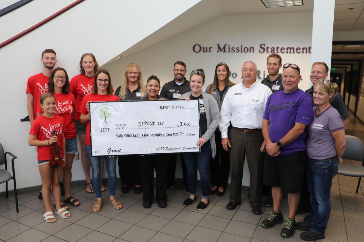 “Strings, Inc. plans to set up an endowment for their organization to be more self-sustaining,” said Phalong Zehr, JETT Granting Committee member. “The Dubois County Community Foundation requires $5,000.00 to begin an endowment. Strings, Inc. fundraised $2,500.00 and asked JETT for a grant to cover the rest.” “Even though we are funded through tuition and individual contributions, it’s not sustainable for us to ask for more money every year,” said Schaick. “The JETT grant is a way to start that endowment where we can be sustainable.”