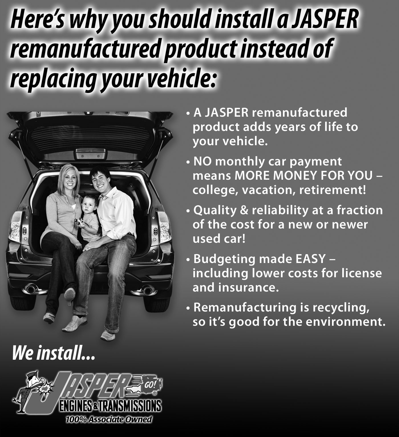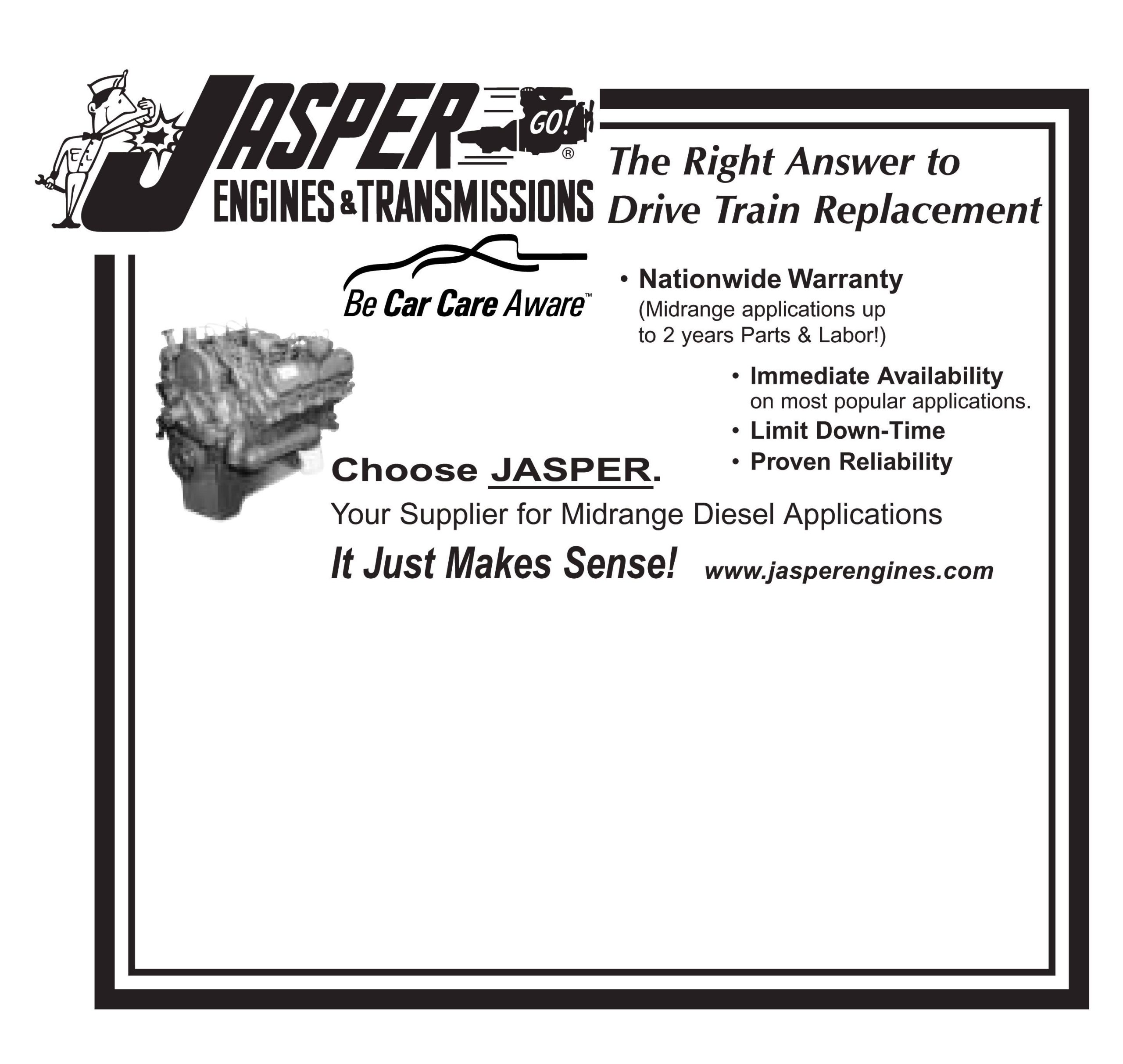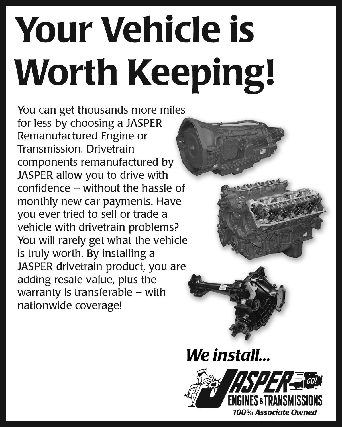 Note: The JASPER logo with the words “We Install” and the warranty, as shown at the left, is the minimum that must be included in your ad for it to be considered for Co-op Advertising. We encourage you, however, to design ads with greater JASPER content. When doing this, you can use the other logos supplied. Please keep in mind the size of the JASPER content in your ad in order to adequately promote JASPER products, the sale of which adds profit to your business. Proper JASPER content also allows you to better utilize the Co-op funds available to you. Please refer to the Co-op Reimbursement Examples and the JASPER Ready-Made Ads for ideas in designing your ads.