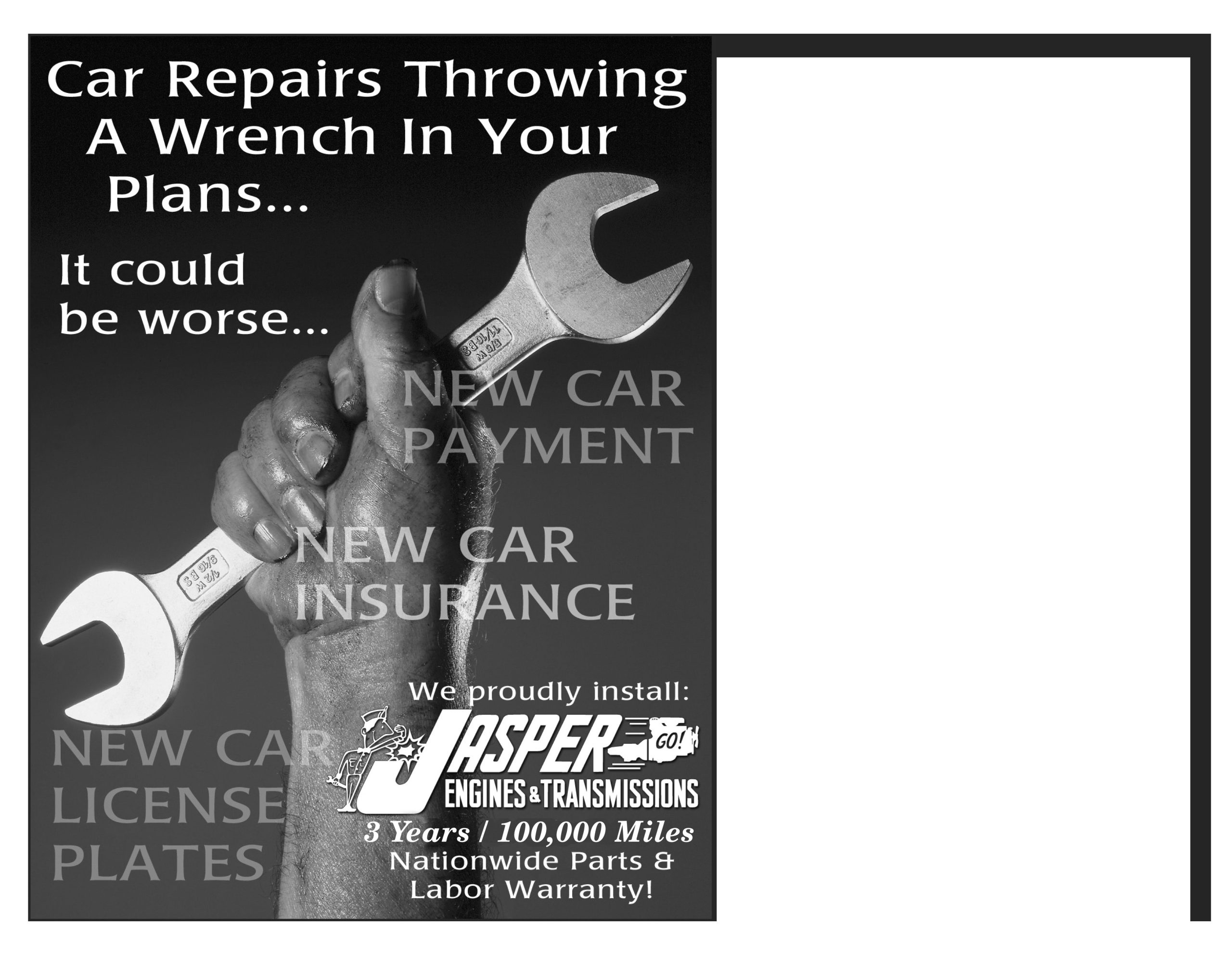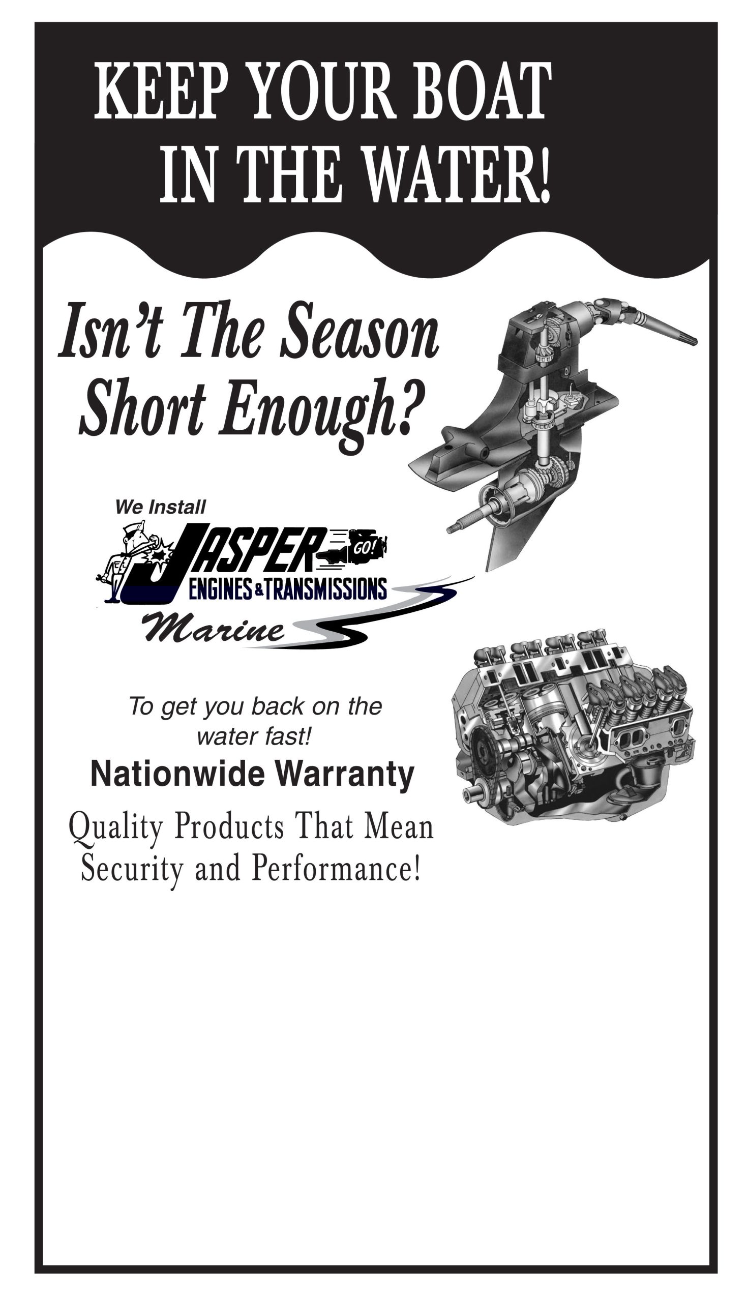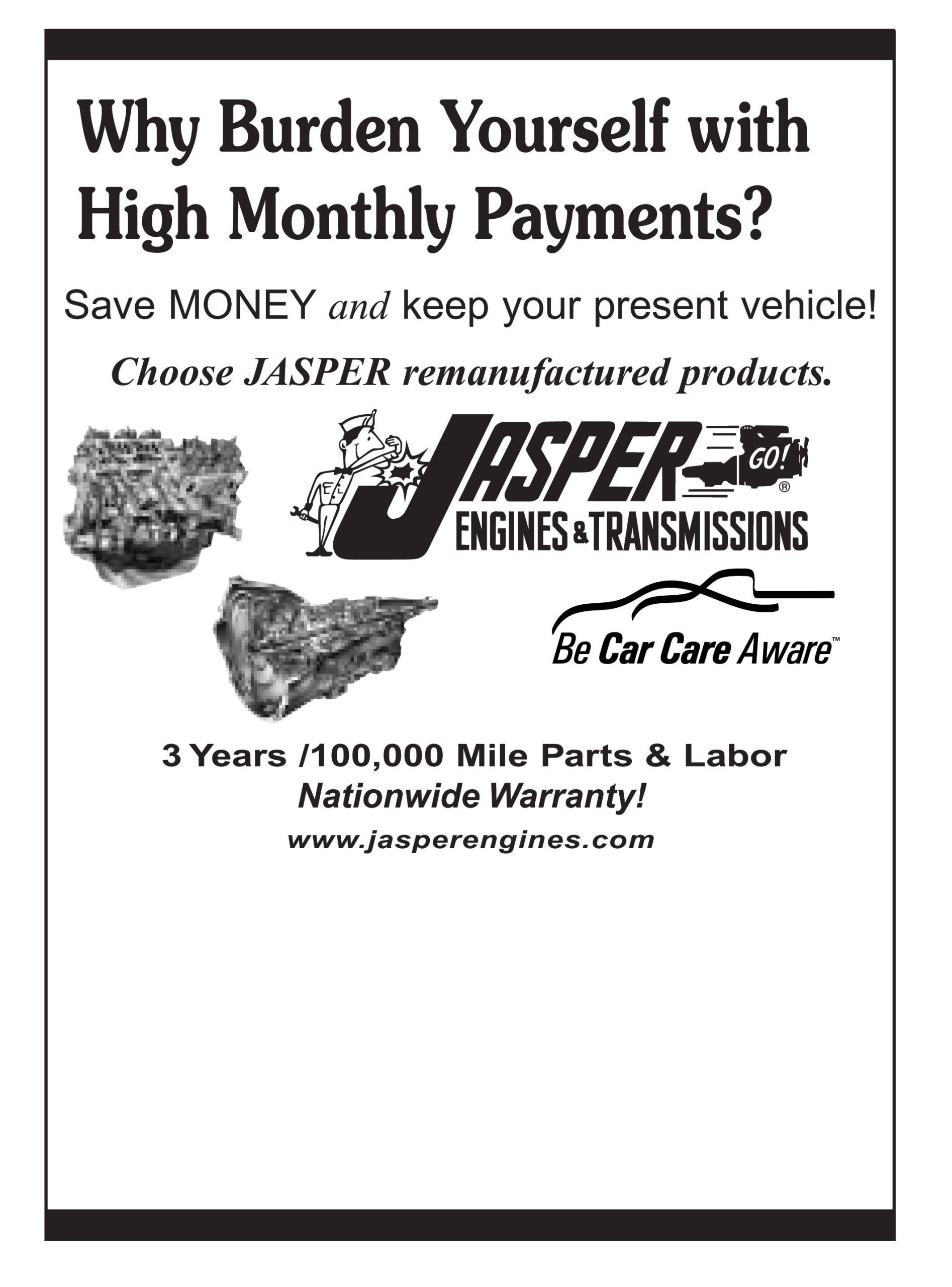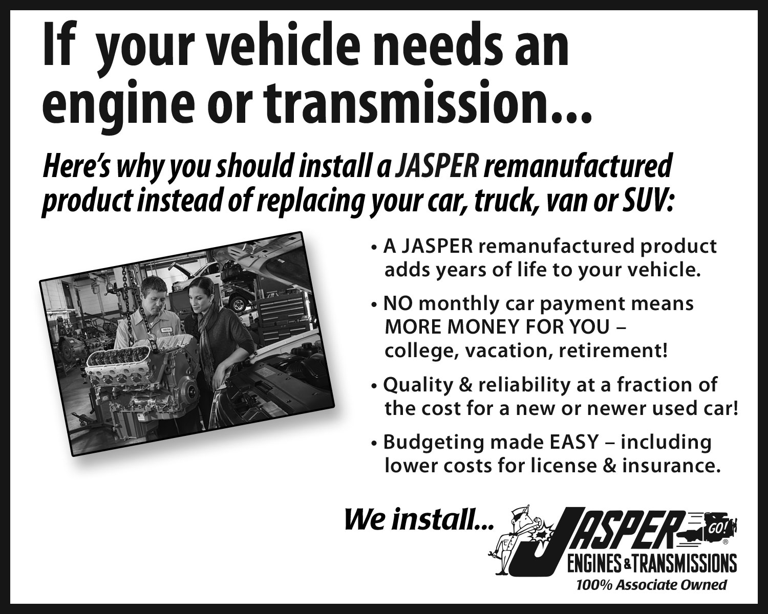 Note: The JASPER logo with the words “We Install” and the warranty, as shown at the left, is the minimum that must be included in your ad for it to be considered for Co-op Advertising. We encourage you, however, to design ads with greater JASPER content. When doing this, you can use the other logos supplied. Please keep in mind the size of the JASPER content in your ad in order to adequately promote JASPER products, the sale of which adds profit to your business. Proper JASPER content also allows you to better utilize the Co-op funds available to you. Please refer to the Co-op Reimbursement Examples and the JASPER Ready-Made Ads for ideas in designing your ads.