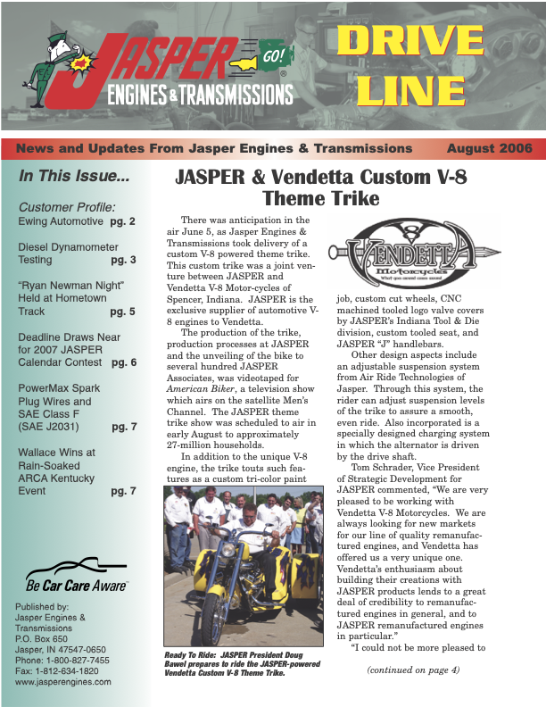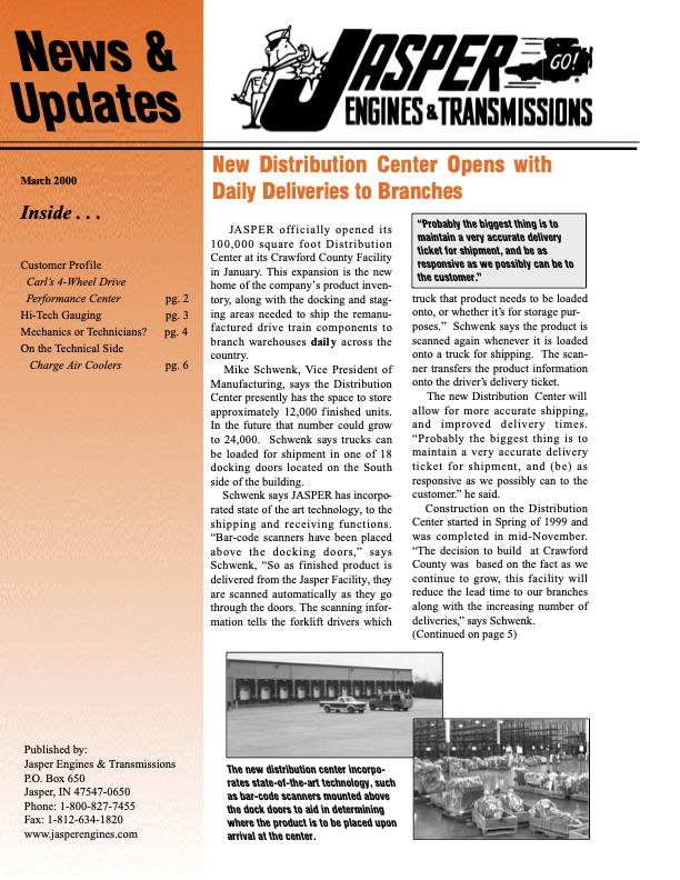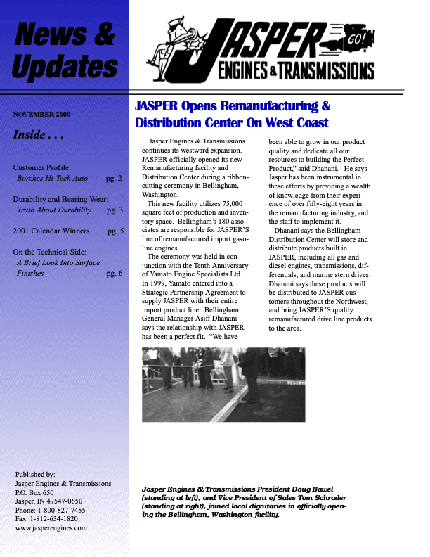 Features: Customer Profile: Extreme Automotive, Kingman Distribution Center Open, Fred Ernst: Older Product/Newer Product, JASPER® Receives Merit Certification from Indiana Department of Labor, JASPER® Has More Domestic & Import Late Model Engines Available